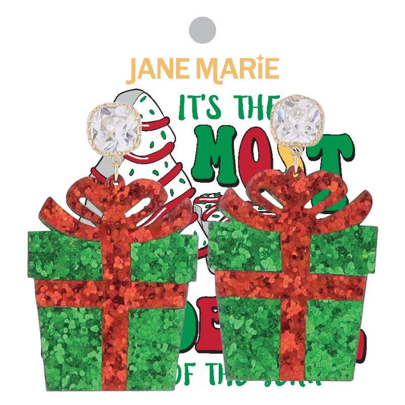 Pink, White Acrylic Santa with White/Silver Pom Earring